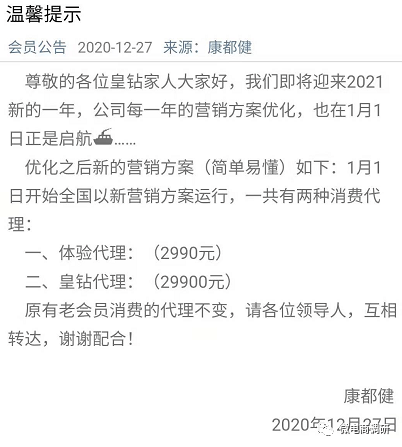 关于分红的说法,也可以通过康都健商城发布的公告得到验证: