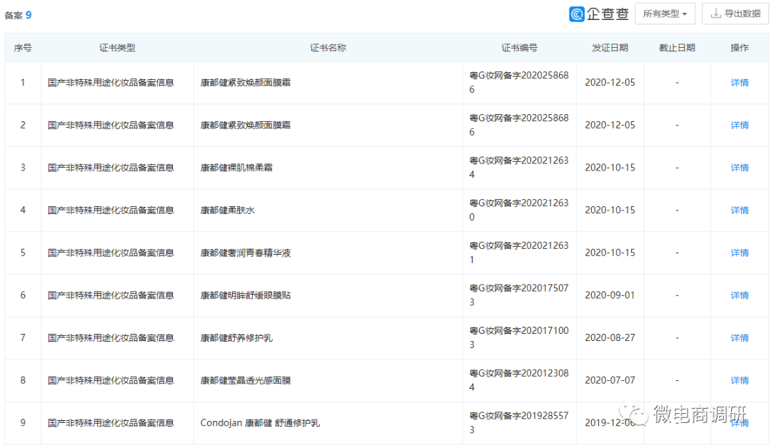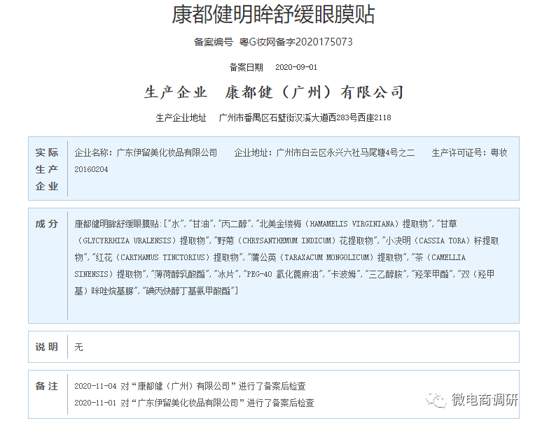 但据企查查显示,“康都健明眸舒缓眼膜贴”这款产品仅属于国产非特殊用途化妆品。