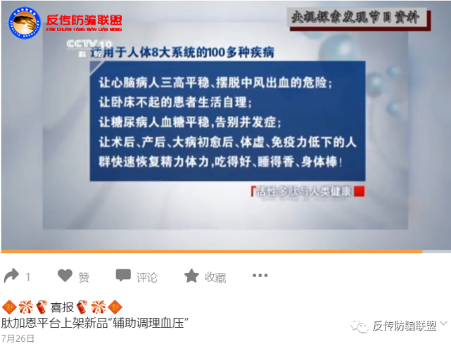 所谓能调理百病的小分子肽却与肉中的蛋白质并无区别,自吴长海为操盘手的“北京高原圣肽”涉传被查后,太爱肽集团旗下的“肽加恩御皇肽”在虚假宣传、涉嫌传销的路上还能走多远?反传防骗联盟将持续关注!