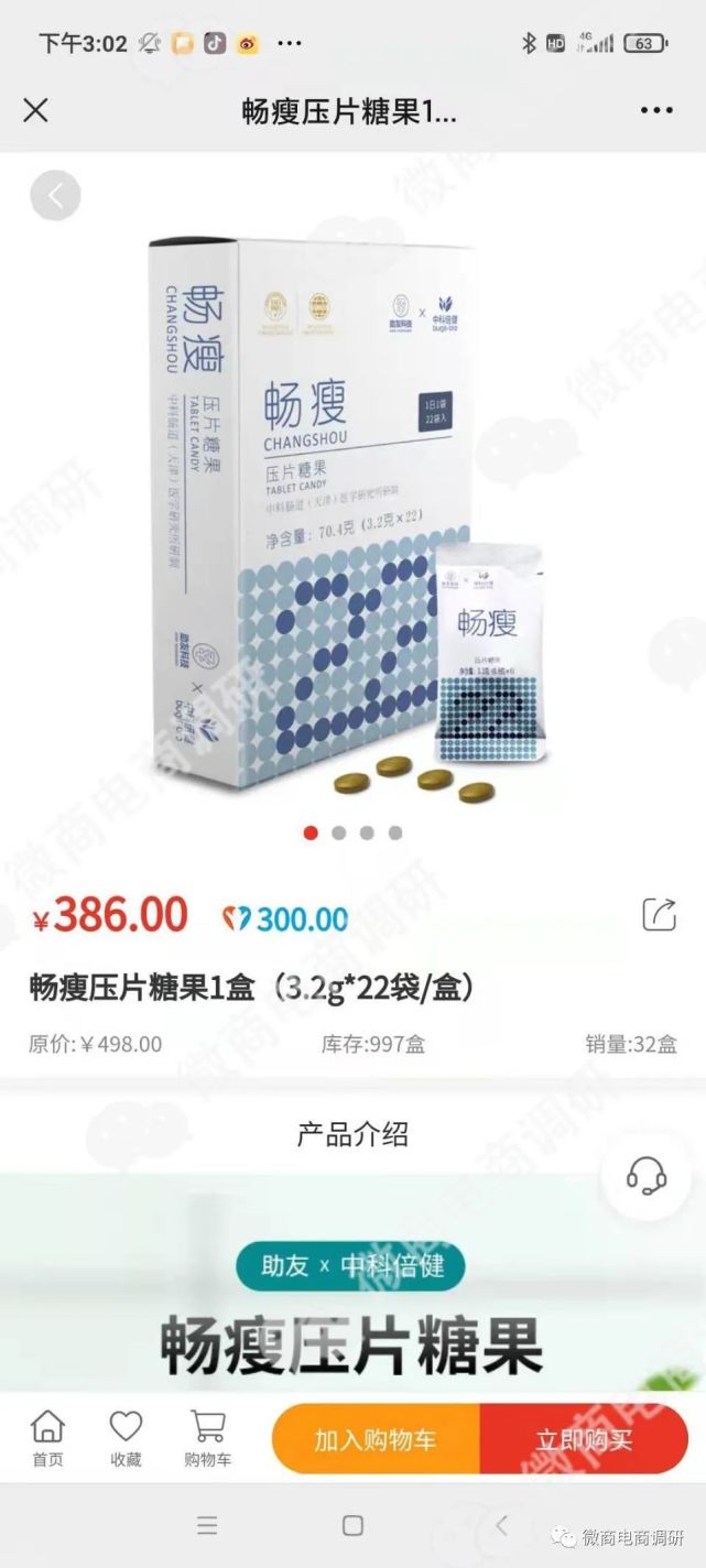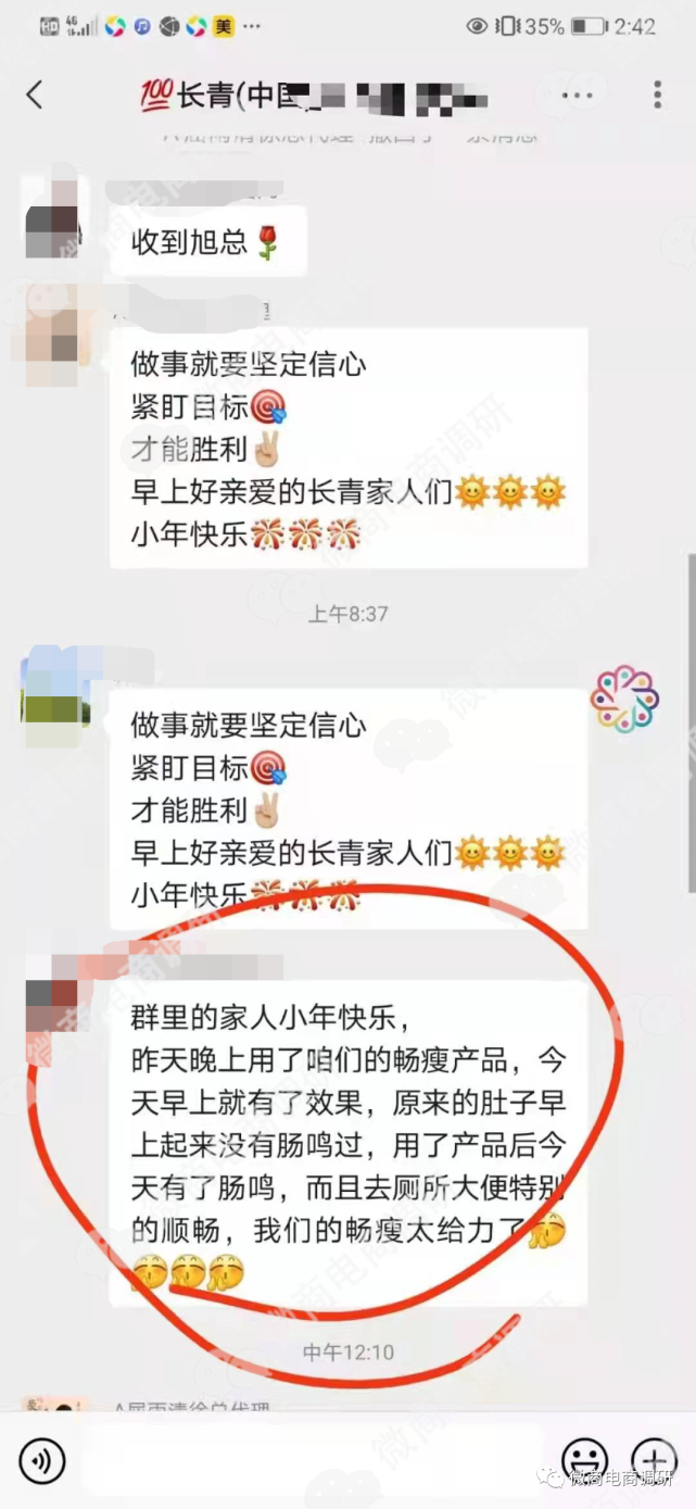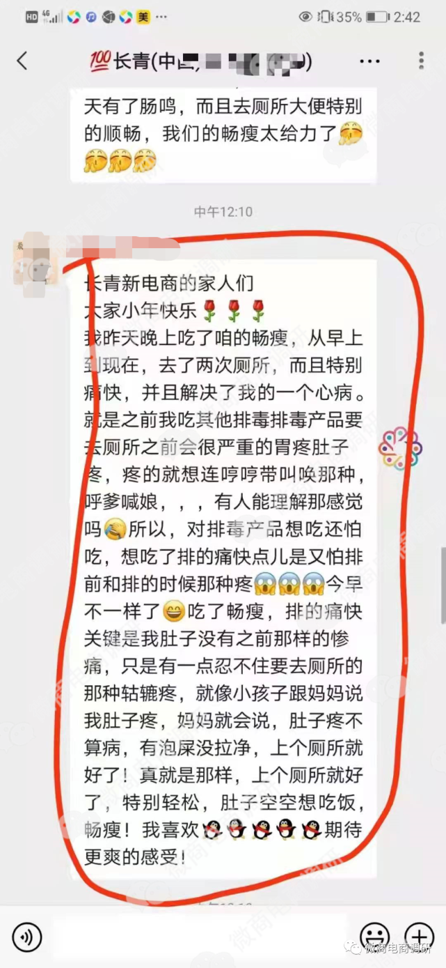 为此,微商电商调研打开直销企业长青(中国)日用品有限公司的官网及官方微信公众号,均没有发现与“长青新电商”相关的新闻。深入调查才知道,原来所谓的“长青新电商”是助友(天津)科技发展有限公司起的项目,主推产品畅瘦压片糖果,宣传是“中科院肠道研究所”研发,对清理肠道和减肥有很好的效果。