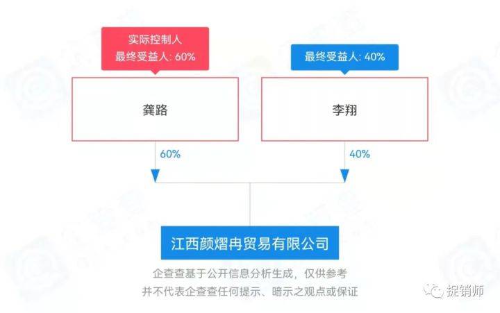 根据企查查APP数据显示,江西颜熠冉贸易有限公司成立于2018年9月27日,法人龚路持股60%,李翔持股40%。