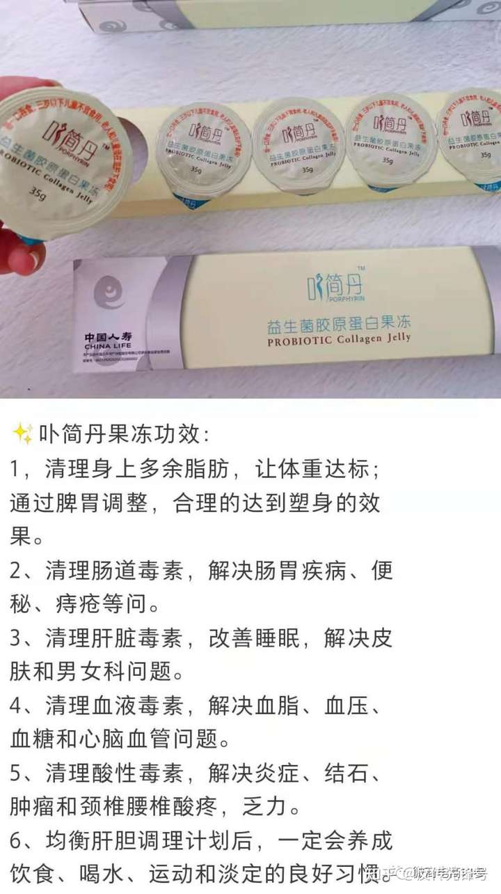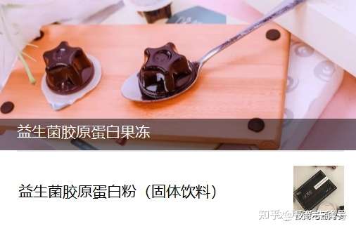 先说益生菌胶原蛋白果冻,官方公众号在相关产品信息里是这样描述的:该产品具有抑糖燃脂、美颜换肌、提升免疫力、速清肠道等保健功能。