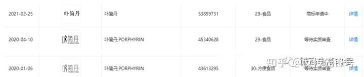 顺带一提,该公司旗下有关卟简丹的食品和方便食品这两类商标中,有两个商标正处于等待实质审查,还有一个商标正处于商标申请中。