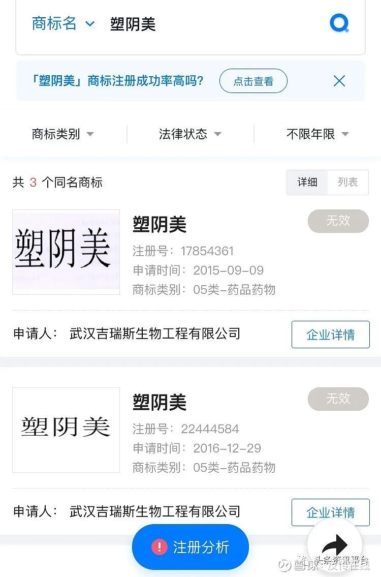 在公司的宣传资料里我们找到了产品的品牌历史记录,据悉,在2000年,具有塑阴功能的“SOYOMO”在法国研制成功,三年后,武汉吉瑞斯生物工程有限公司的领导人将这款产品的专利引进中国,而这家公司就是前文我们提到过的山东华旭生物科技有限公司的联营企业之一,并且这家公司的法人正是产品的研发人焦文平,他们将英文名“SOYOMO”音译成塑阴美,医学名称为芦荟妇洁护理露,目前,塑阴美商标名已处于无效状态。