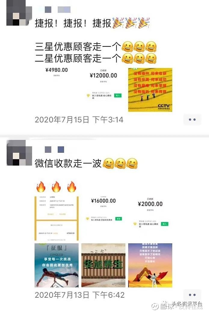 零售差价的利润再加上各项奖金分红,代理的收益看起来相当可观,就拿一星顾客拿货来说,1980元的产品卖出去纯利润就高达1089元,已经达到了55%的收益,三星顾客1980元的产品利润更是直达75%,再加上经销商频繁的分享收款图,很容易就吸引一大波人加入。