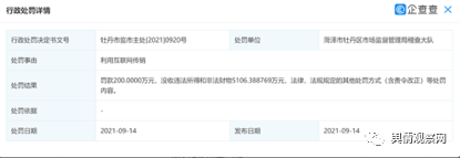 本网在企查查发现,四川谷瑞城智能科技有限公司于去年因利用互联网传销被菏泽市牡丹区市场监督管理局稽查大队罚款200.0000万元,没收违法所得和非法财物5106.388769万元。