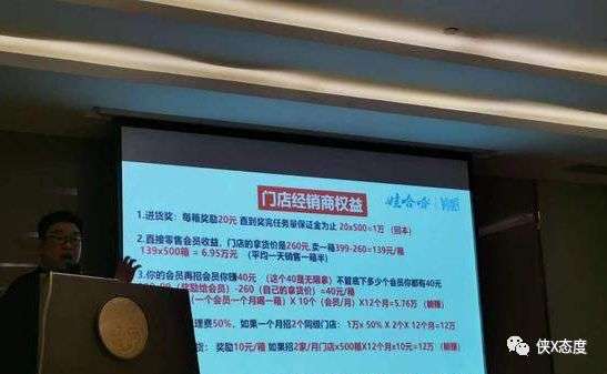 据黄飞提供的现场招商会图片,每页介绍娃哈哈妙眠代理层次权益的PPT都明确标注着“躺赚”、“无限拿”等关键词,“当时就像洗脑一样,最后签约的有4个人,其中3个是当场交费”。