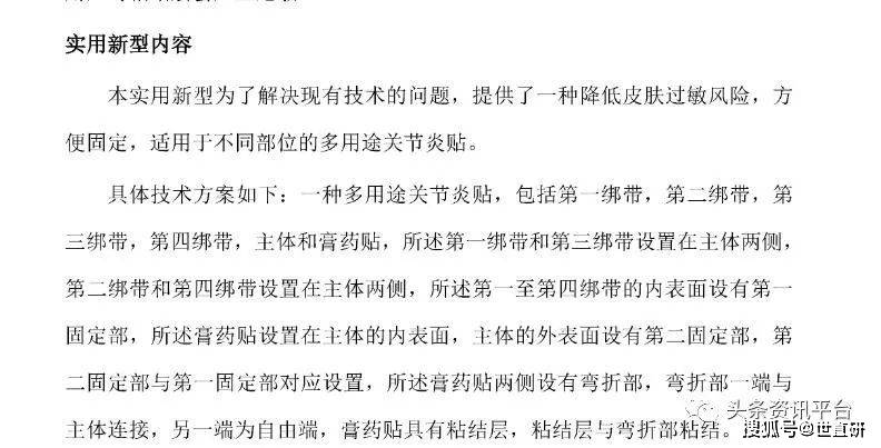 除此之外,上海承和堂生物科技有限公司旗下的实用新型专利内容里也只显示这款产品是提供了一种降低皮肤过敏风险,方便固定,适用于不同部分的多用途关节炎贴,并没有包含前文所说的治疗多种疾病的神奇技术。