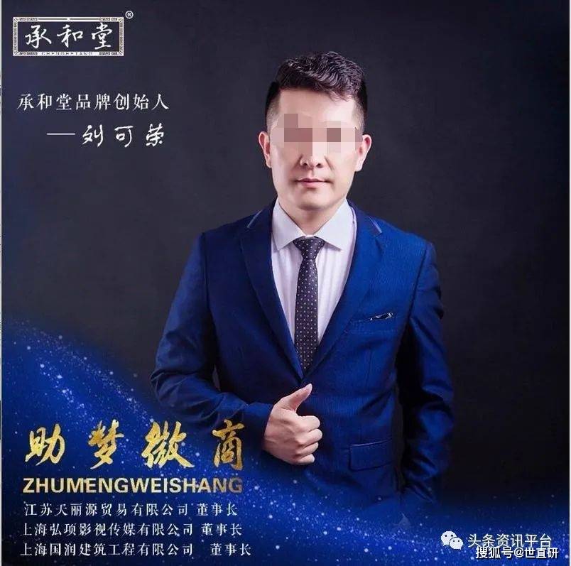 刘可荣,上海承和堂生物科技有限公司董事长,同时也是承和堂品牌创始人,他旗下有5家公司。据资料显示,二十年前,年仅16岁的他就因为家庭经济困难而被迫辍学前往上海打拼,在上海时他没地方住就睡火车站,省几个菜钱就到上海郊外采野菜,并且一天打几份工。两年后,他用积累下来的第一笔资金开了一家石材店;再过两年,他开了一家石材加工厂;接着,他又建立了自己的工程公司,事业开始步入快速上升期。