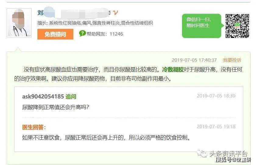 另外值得一提的是,还曾有网友就相关问题在“快速问医生上”进行过咨询,对此,医生回应称:“冷敷凝胶对于尿酸升高,没有任何的治疗效果。”