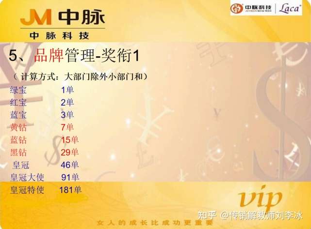 根据中脉规定,“Laca内衣”项目的加盟费分4万、8万、16万、28万等多个档次,不同档次对应的级别和收益计算方式不同。投入4万和8万为普通加盟商,投入16万为县级加盟商,投入28万即达到开办会所等级。除此之外,还有加盟商中间穿插了不同的“奖衔”,根据“拉人头”数量,从“绿宝”到“皇冠特使”划分九个等级。而实际运营过程中,加盟商的层级还可能更多,“比如县级代理商中间能够发展5层客户,市级代理商能发展8层,还有省级代理商能发展7代,目的就是为了拉更多人。”陈华解释道。
