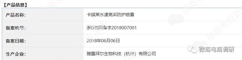 除了消毒产品和食品的领域,美信新零售还涉足了化妆品行业,“卡琪莱水漾亮采防护喷雾”便是他们的杰作。在过往数年间,这款产品也被有关宣传材料包装出了防晒作用。