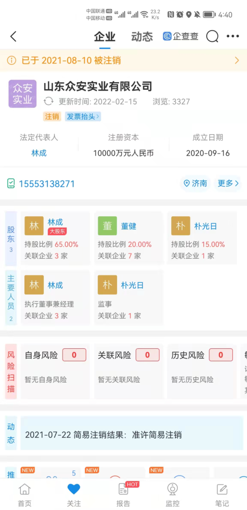 而在一年前作为运作的总公司,山东众安实业有限公司因被相关媒体曝光涉嫌传销,被林成注销掉相关公司。开始走有限合伙企业,来规避风险。