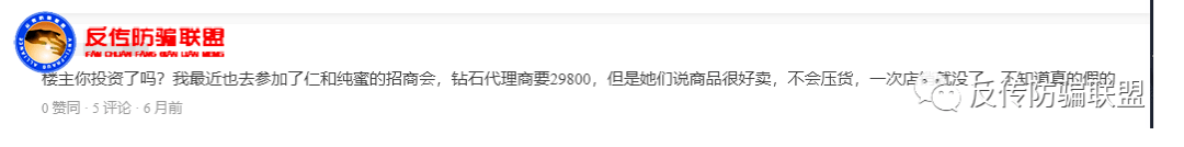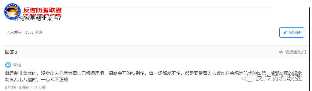 网络上,对于仁和纯蜜的质疑也是很直白的,网友们直言就是割韭菜和传销!