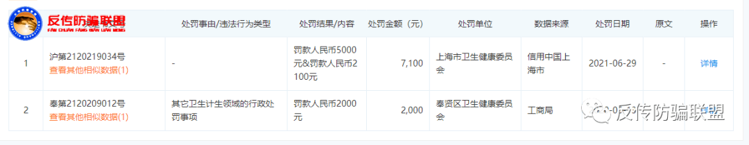 据企查查公开信息显示,上海美哈生物科技发展有限公司曾在2020年5月和2021年6月因卫生问题分别被奉贤区和上海市的卫生健康委员会行政处罚了2000元和7100元人民币。