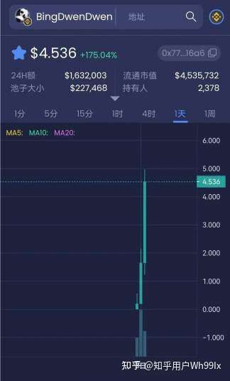 这个时候,一个土狗项目蹭着冬奥的热度横空出世了,这个“bingdwendwen”一瞬间暴涨几十倍,从0.3直接暴涨到4.5,这热度真的太好蹭了。