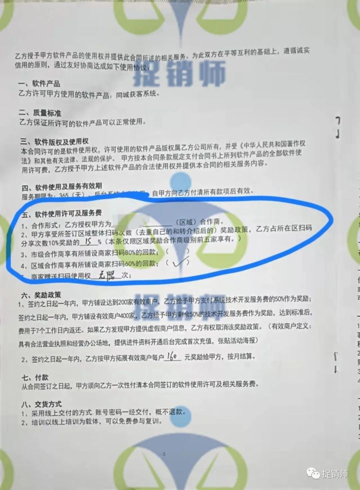 嗨皮码公司紧接着拿出了代理商的项目合同,开始讲做代理的利润和发展前景,只要做了代理商一年做少能赚80~100万元,能分到项目60%的利润分成,市级代理商可以发展区域代理商,费用29800元。他们招商户入驻,我都有奖励和分成,相当于躺着也能赚钱,并称,现场招代理区域代理只有5个名额,代理费是29800元,市级代理只有一个名额49800元,先到先得。