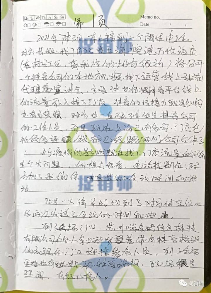 2021年7月3日,本人接到一个陌生电话,对方告知我7月25日在上海榕港万怡酒店(在松江区,理我住的地方很近)将召开一个某音的本地视频线下运营线上引流代理商宣讲会,主要讲如何把某音线上的流量引入线下门店,某音的传播力和影响力是有目共睹的,对方也一直强调他是某音公司的工作人员,而且现在上海已有多家门店包括很多连锁店已经跟他们公司合作了。