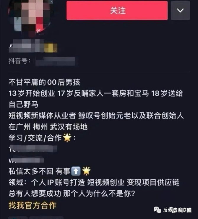 短视频平台上鲸叹号合伙人的介绍:13岁开始创业,17岁反哺家人一套房和宝马。