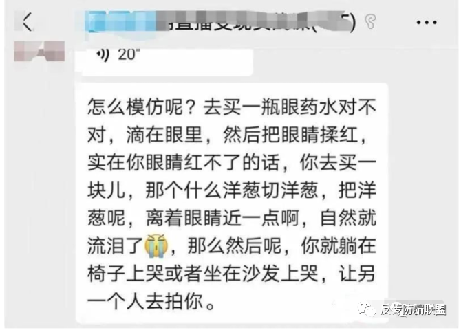 微信群里,授课老师称,拍摄痛哭的短视频可事先备好洋葱和眼药水。