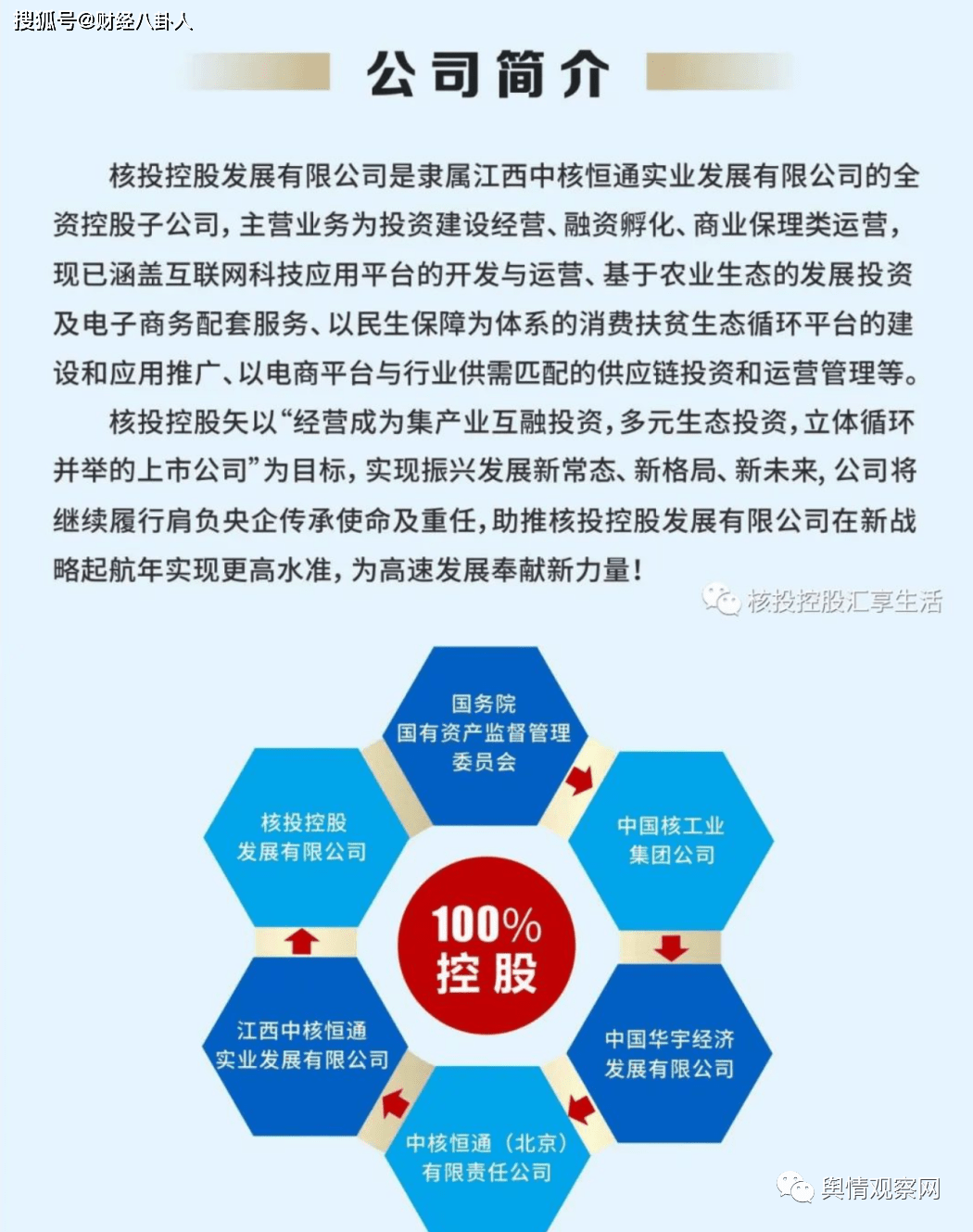 据企查查显示,核投控股发展有限公司注册资本为5000万元,成立于2017年12月19日,法定代表人是李尚东,该公司由江西中核恒通实业发展有限公司控股,对外投资公司有武汉垠通供应链管理有限公司,湖北核投楚汉科技有限公司,核控科技创新发展(武汉)有限公司,微信公众号名为“核投控股汇享生活”。