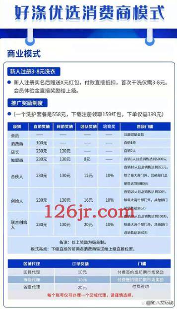 名为洗衣,却有拉人晋升模式,一个“好涤优选”的项目被市民爆料给金融鹰眼126jr.com,好涤优选的运营主体江苏好涤智慧科技有限公司,关联公司有上海好涤洗涤有限公司、好涤(常州)洗护服务有限公司、江苏好涤网络科技有限公司、江苏好涤优选电子商务有限公司。