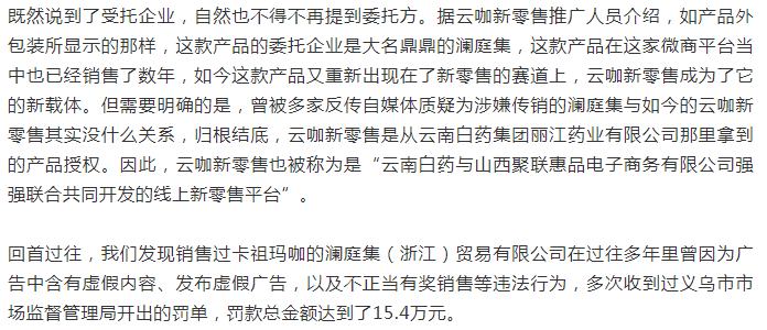 顺带一提,该产品的实际生产企业云南白药集团丽江药业有限公司此前还曾不止一次遭到过有关部门的行政处罚。