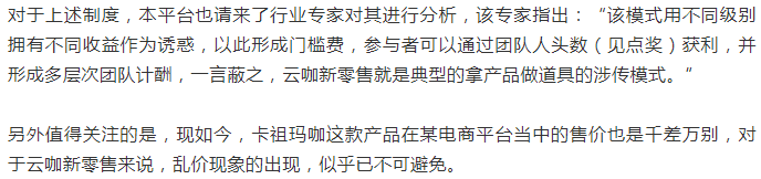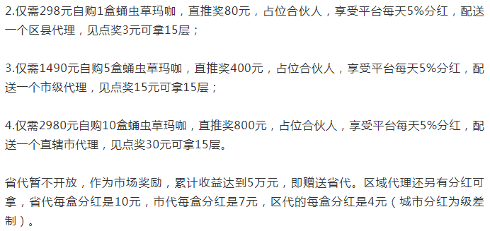 那么,云咖新零售所销售的“蛹虫草玛咖片”是否具有“改善睡眠”等保健功效,以及“缓解前列腺炎”等医疗作用?这款产品曾与备受争议的澜庭集有何关联?云咖新零售现行的奖金制度被专家指出存在哪些法律风险?在短短一个月的时间内,云咖新零售的奖金制度又进行了怎样的调整?