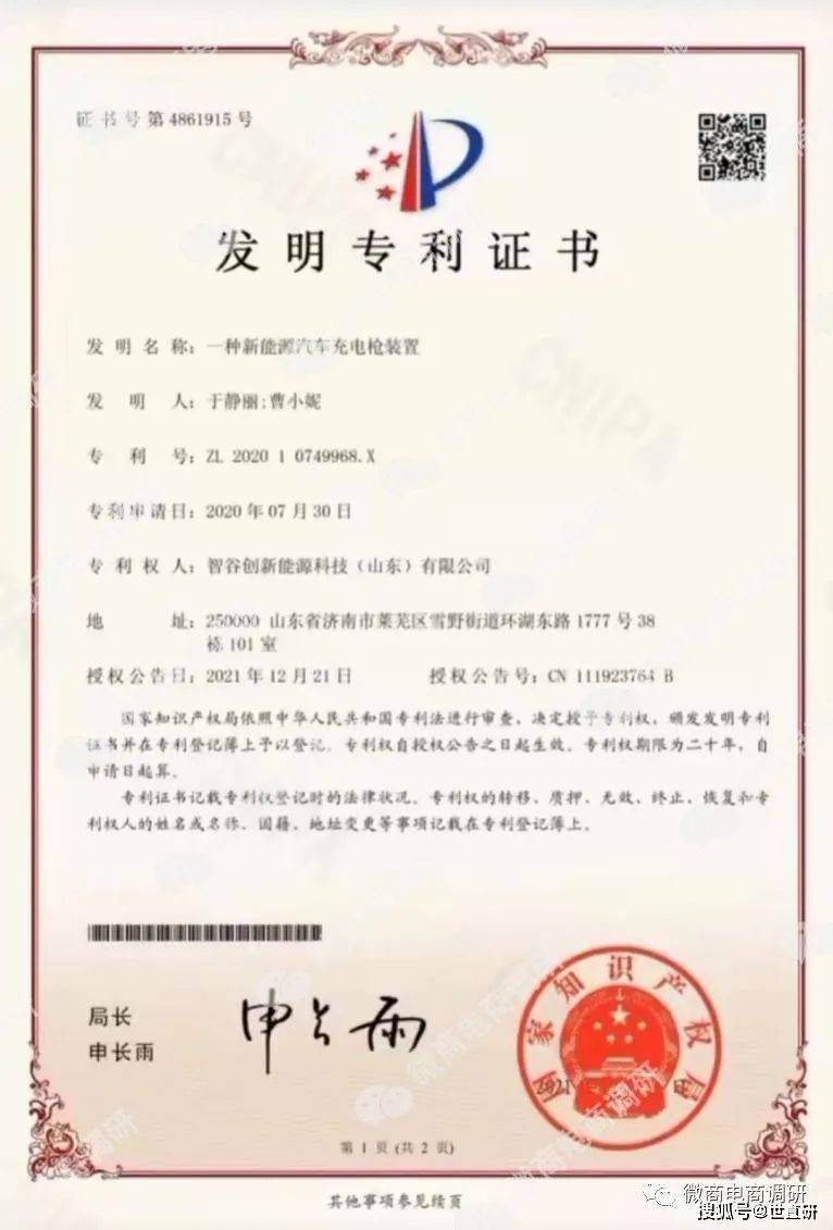 来源:智谷新能源代理分享专利证书