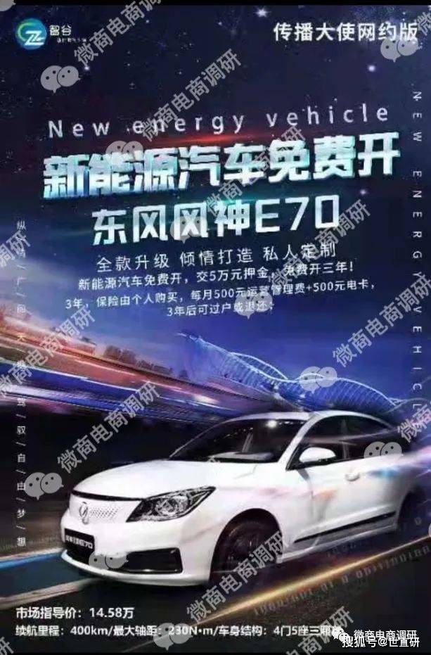 据介绍,智谷新能源汽车只需要缴纳1万元定车,就可以成为传播大使,有多重福利,不仅可以免费开车,而且还可以边开车边赚钱。那么,所谓的智谷新能源真的可以让传播大使不花一分钱提车,甚至还可以边开边赚钱吗?