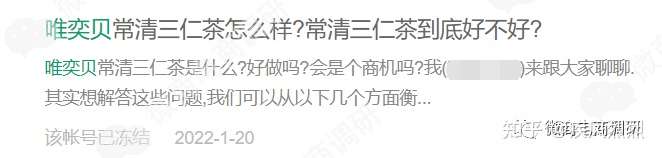 顺带一提,某个推广常清三仁茶的公众号在当下已处于“该账号已冻结”的状态。