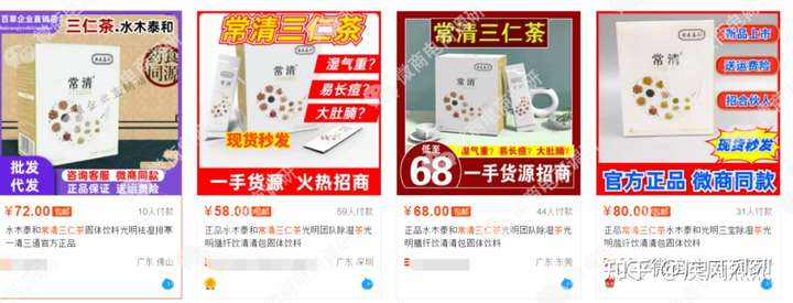 虽然常清三仁茶才上市没多久,平台还正处在内测期,不过在某电商平台当中,已有不少店铺在销售该产品,且售价各不相同。可见,在唯奕贝经销商团队当中,乱价现象似乎已然存在。值得注意的是,不少店铺在之前卖的产品都与光明新零售有关,一些店铺给自己贴的头像也有光明新零售的元素,显然,目前在该平台上销售常清三仁茶的“掌柜”,很多都是原来光明新零售的代理。