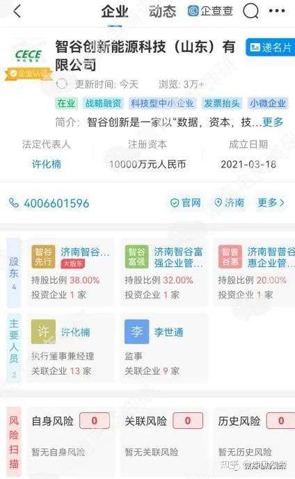 经查,智谷创新新能源科技(山东)有限公司成立于2021年3月18日,法定代表人为许化楠,监事李世通,注册资本为1亿元,企业地址位于山东省济南市莱芜区,所属行业是批发业,经营项目是电力行业高效节能技术研发;电动汽车充电基础设施运营等。