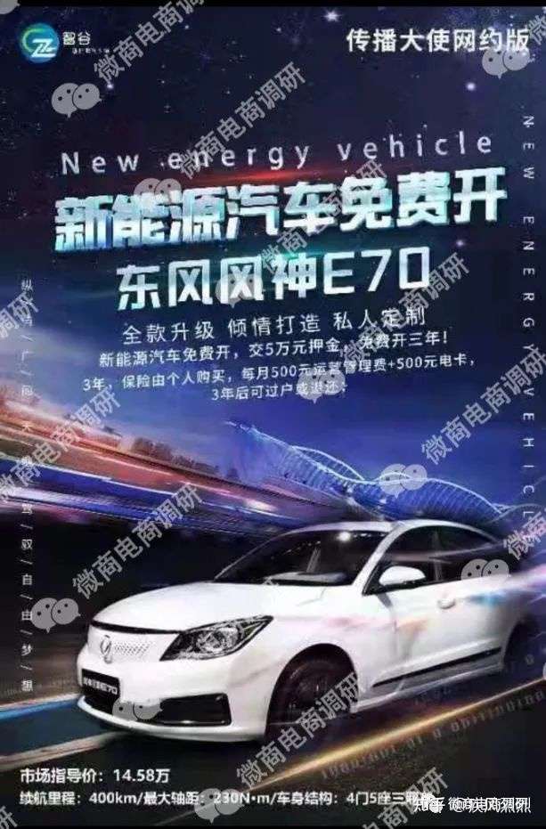 据介绍,智谷新能源汽车只需要缴纳1万元定车,就可以成为传播大使,有多重福利,不仅可以免费开车,而且还可以边开车边赚钱。那么,所谓的智谷新能源真的可以让传播大使不花一分钱提车,甚至还可以边开边赚钱吗?