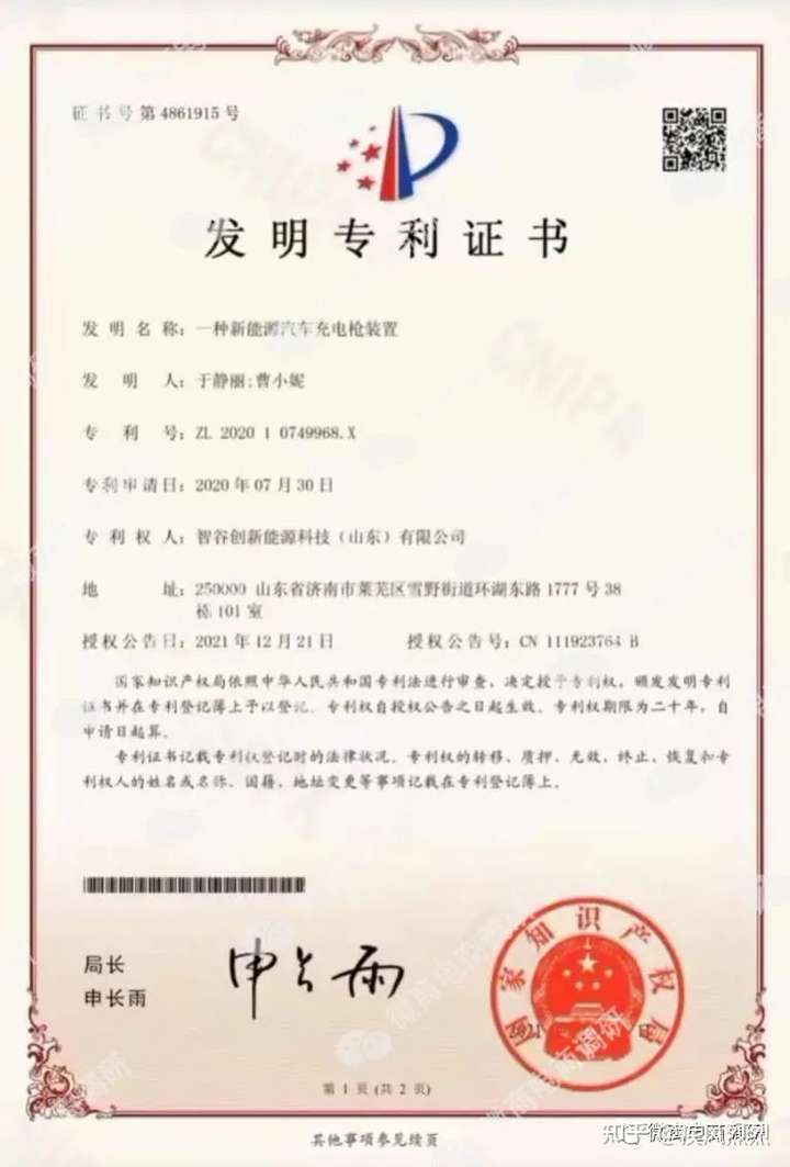 来源:智谷新能源代理分享专利证书