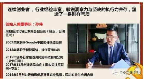 相关资料还提到,孙伟是山东日照人,日照政府还对其给予了大力的扶持,帮忙把云尚真优品的行政办公区域迁移日照。