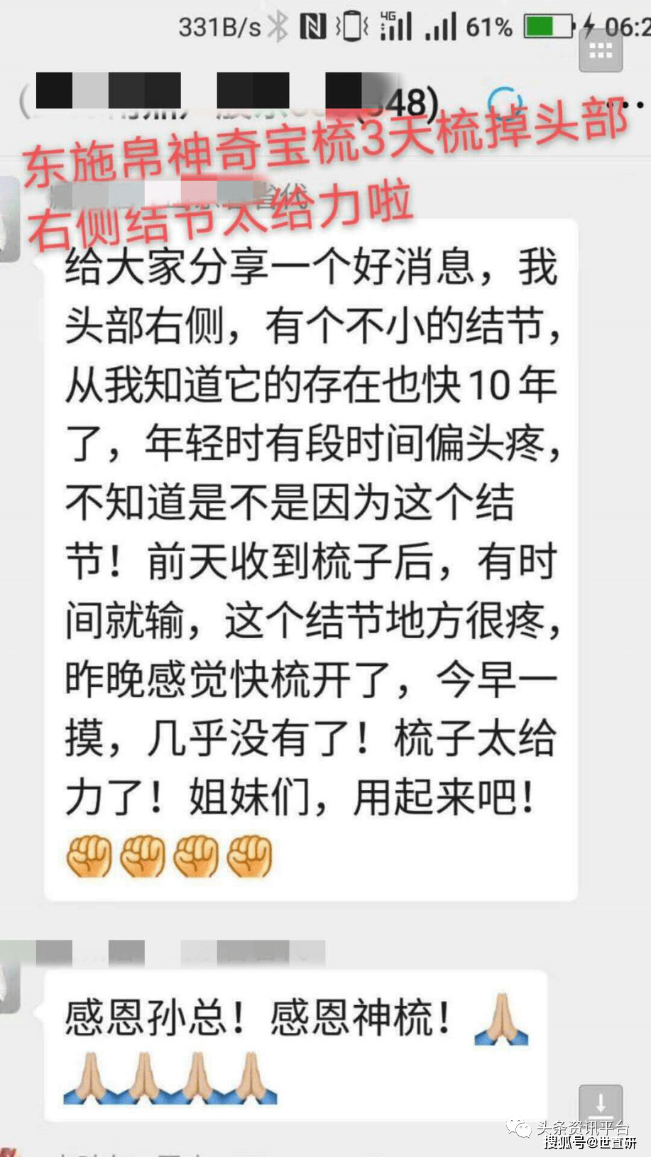 除了这些,还有许多通过东施帛免洗头梳子受益的案例,小到失眠、头痛、颈椎病,大到老年痴呆、久病卧床不起者,这把梳子都能一一解决。