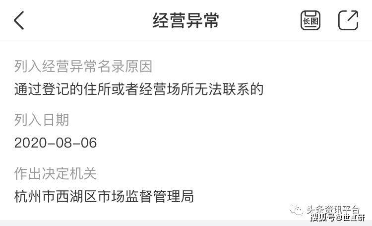 然而就在前不久,上新坞(杭州)科技有限公司因为通过登记的住所或者经营场所无法联系,被当地的管理局列入企业经营异常名单。