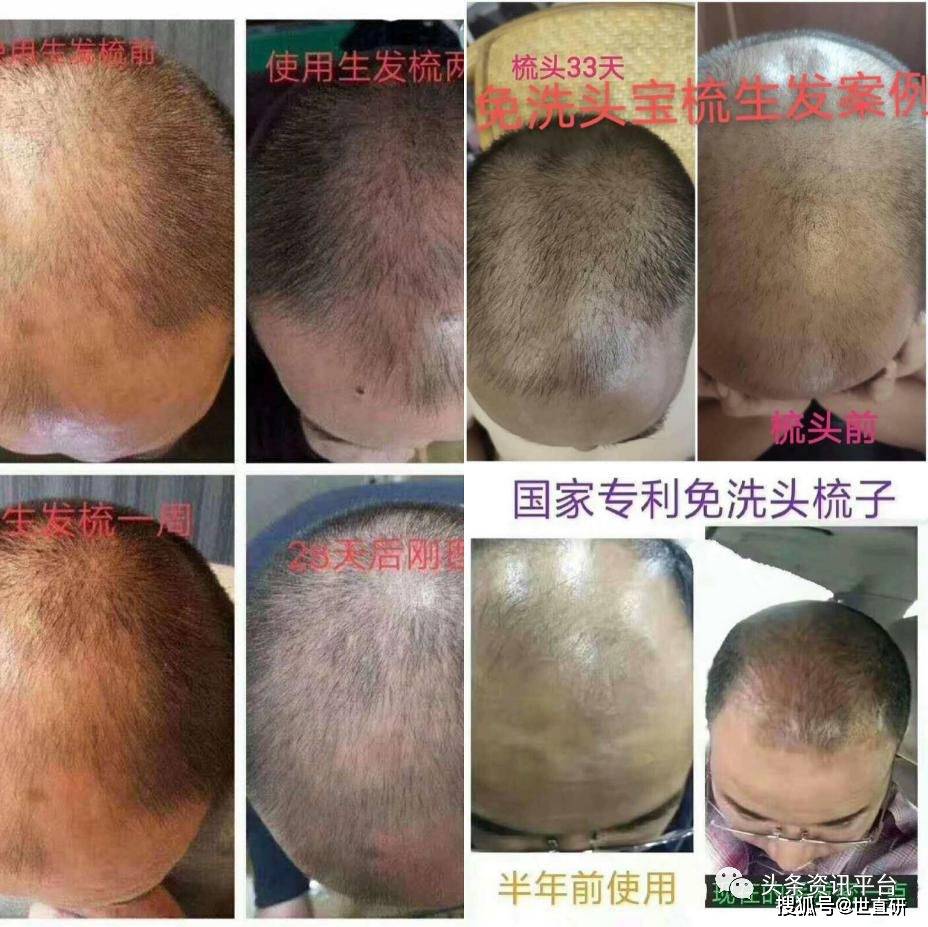“任何年龄,用梳子梳头后头皮清理干净了,毛囊就疏通了,激活了黑色素细胞,改善了头发的生长环境,得到滋养后的白发自然就变黑了,生发也是同样的道理。”这是经销商对于产品能够生发、白发变成黑发的解释,并且还给出了许多案例展示。