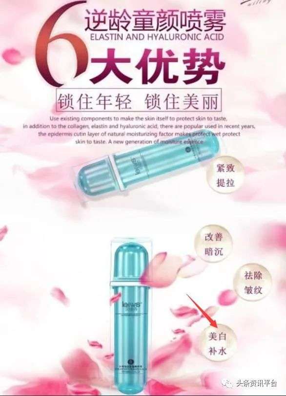 再比如“贝维诗逆龄童颜喷雾”,有宣传图片指出该产品具有美白功效,但实际上,该产品也同样是非特殊用途化妆品。