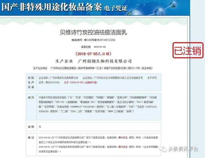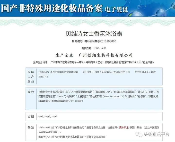 来源:头条资讯平台 #贝维诗#批件过期#责令改正