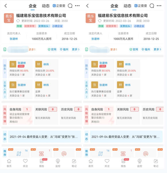 据企查查搜索,福建易乐宝信息技术有限公司是一家新崛起综合性的高新技术开发企业。法定代表人士张建林,该公司于2018年12月25日成立,注册资本为1000万元人民币,实缴资本为0,公司现状为经营异常。
