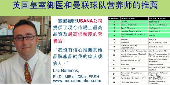 葆婴不是说这位Dr. Laz Bannock声称“除了优莎娜(优莎娜)USANA,我不会推荐任何其他营养品给我的病人和家人”吗?怎么人家的文章却把USANA竞争对手的产品称为“营养学的突破”呀?这不是公然为竞争对手做广告吗?