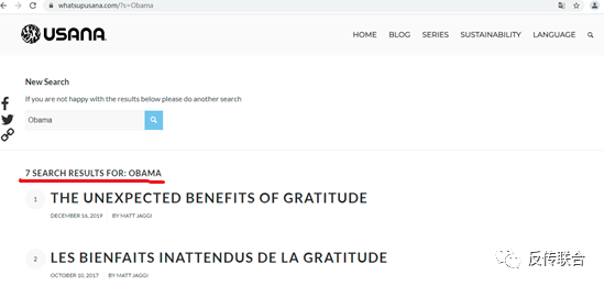 在USANA主页上搜索Obama,只有区区7条结果而已