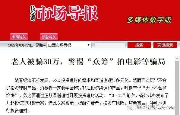 网上所谓“投资建议”不可信我省某市一小区的李女士最近加入了一个投资交流群,“老师”经常在群里分享投资心得。有一天“老师”突然在群里说自己结识了一位导演,对方正在“众筹”拍电影,投资人可以像买银行理财一样参与其中,收益非常可观,投资份额有限,先到先得。李女士平时就爱看电影,怕错失良机,便通过对方提供的链接下载App,试着投了1万元。15天后她获得了2000元的收益,且本金还能取出来,就彻底放下戒备。随后,她累计在平台上投入了30万元,结果平台突然关闭,资金全部打了水漂。