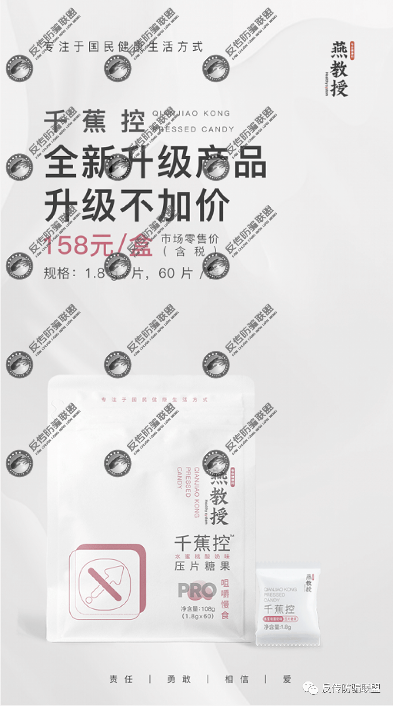 而另一款名为“燕教授千蕉控压片糖果”的产品宣称 是“ 燕教授御热丸奶香味压片糖果”的升级版,此前也同样受到了网友的质疑: