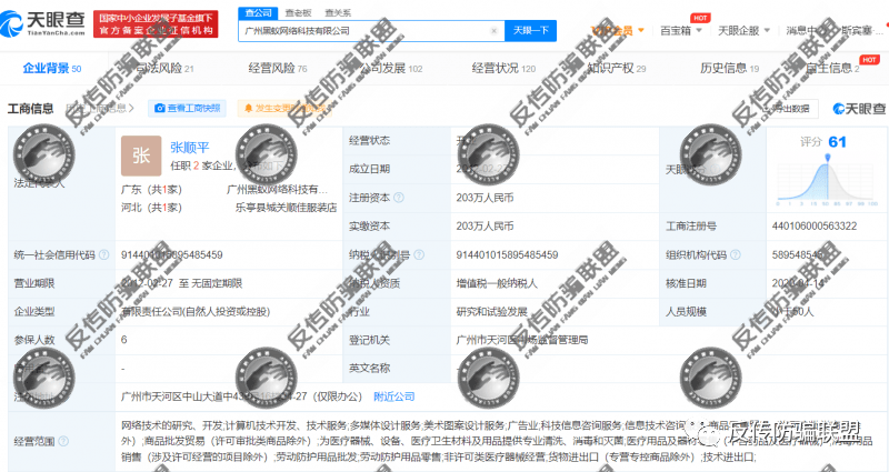据天眼查显示,多拿网平台的主体公司为广州黑蚁网络科技有限公司,成立于2012年2月27日,2020年4月14日法人代表由张硕变更为张顺平,注册与实缴资本均是203万。