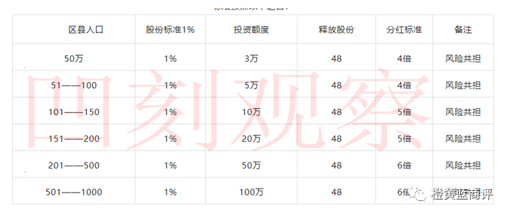 以某个区县人口为50万人举例,投资金额3万元,即可获取该县区分公司1%的股份,回报400%,也就是12万元,就是说驿道物流对于该县区吸纳300万元,而以4倍的回报1200万元回馈给该地区的投资参与者,如此高额的回报配比,简直让人瞠目结舌。