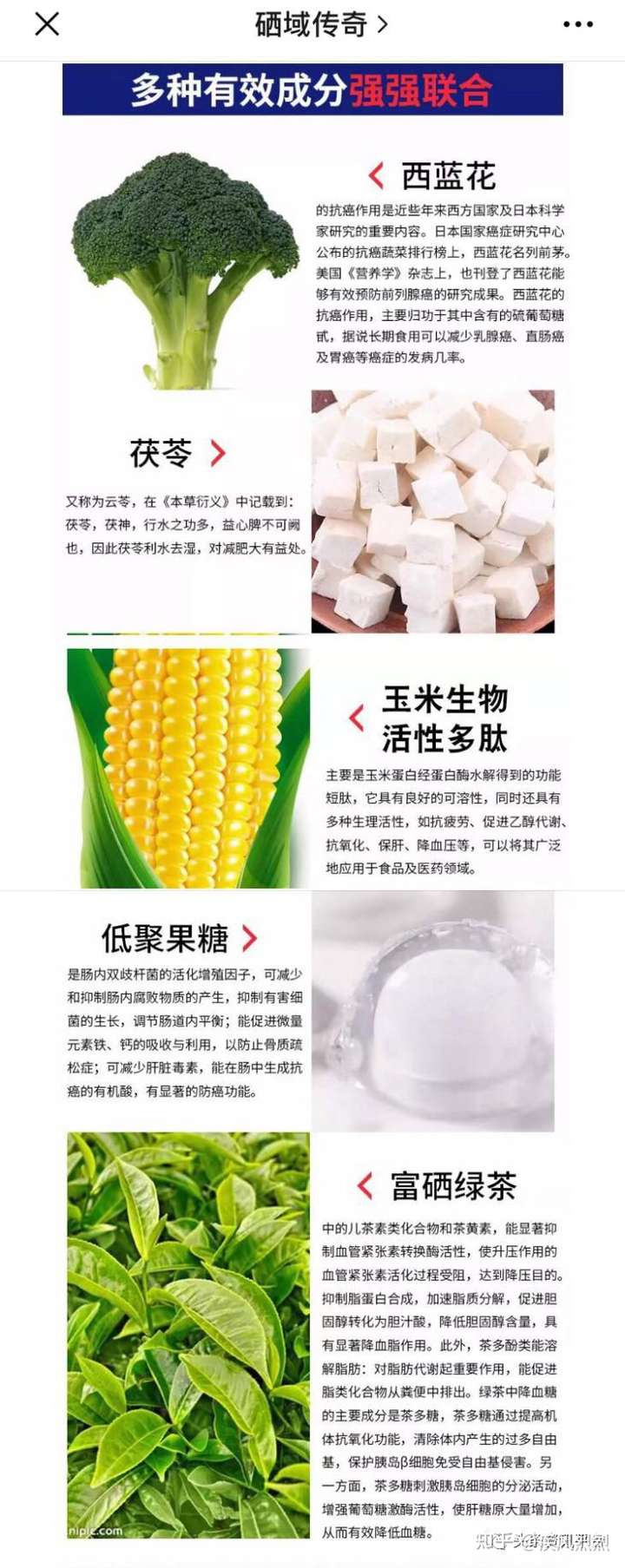 同样,在硒域传奇的公众号上,也有文章对硒都龙涎的产品做了宣传,还明确列出了产品的成分,以暗示其对疾病的功效。
