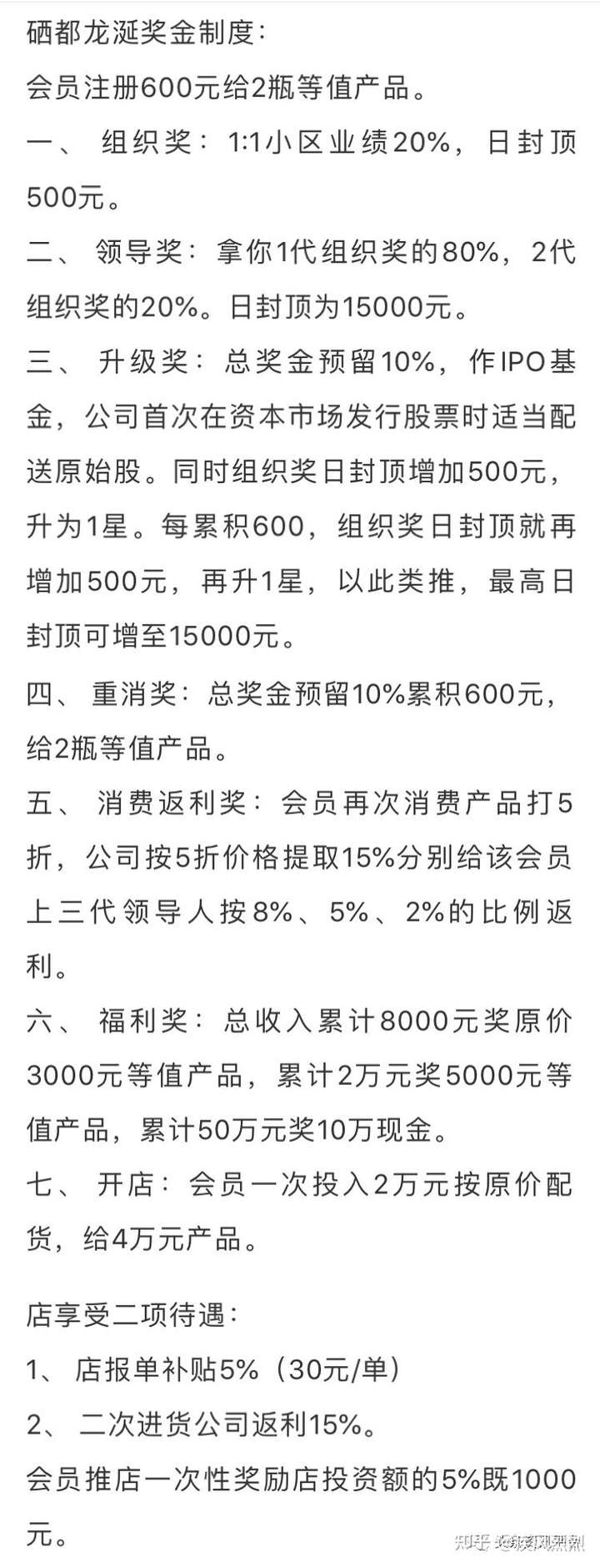 通过以上制度对比,我们发现硒都龙涎公司目前采用的制度和之前网上的版本大同小异,只是会员的门槛有所提高,从之前的600元上升到了790元。